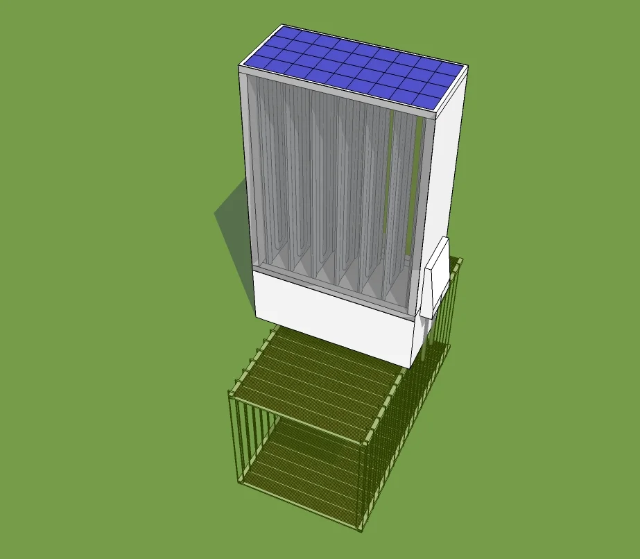 The W/W (Water Whisker) is a technology based on atmospheric condensation that extracts water from humid ambient air. Utilizing electricity generated form the S/S, creating a secondary thermal differential to create a condensing mesh that converts humidity into water.